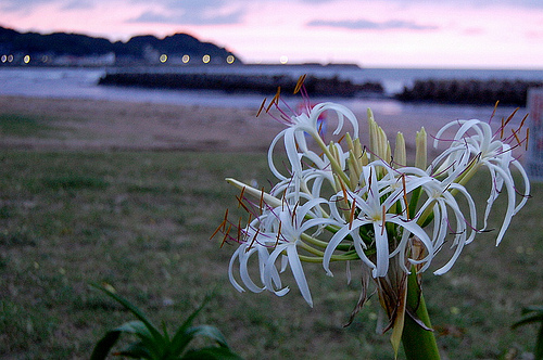 波津海岸に一輪だけ咲いていたはまゆうの花です。
