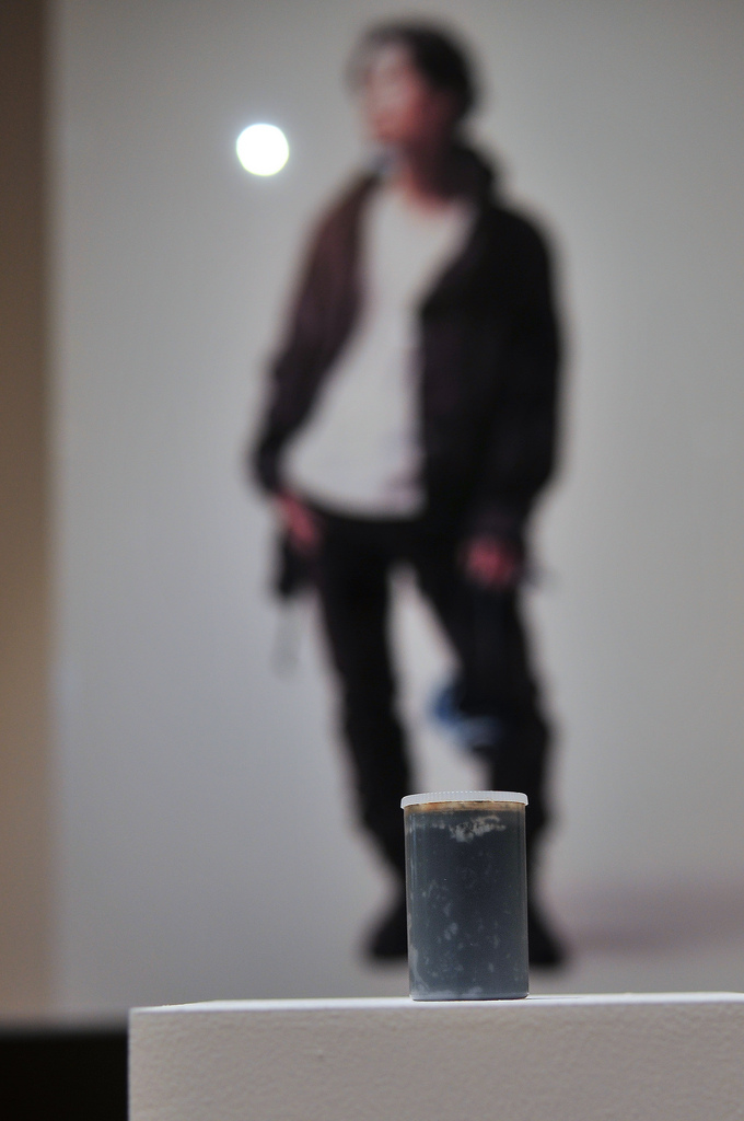 2番目の作品は、津波によって街中に堆積したヘドロ状の土砂をフィルムケースに詰められたものです。