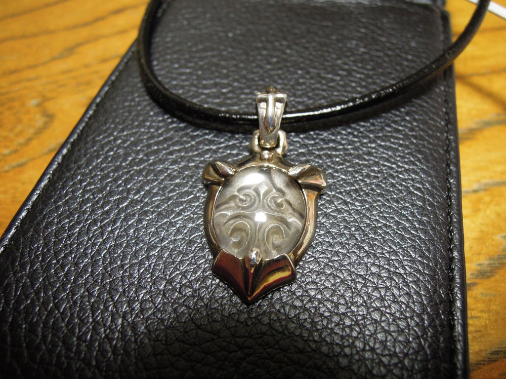 予算の都合で、チェーンはシルバーじゃなくて革紐にしてもらったので、